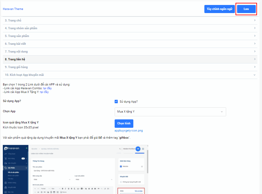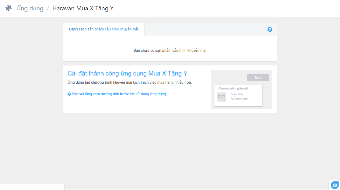 Sau khi cài đặt, Nhà bán hàng truy cập vào Trang quản trị -> Ứng dụng -> Mua X Tặng Y sử dụng ứng dụng.