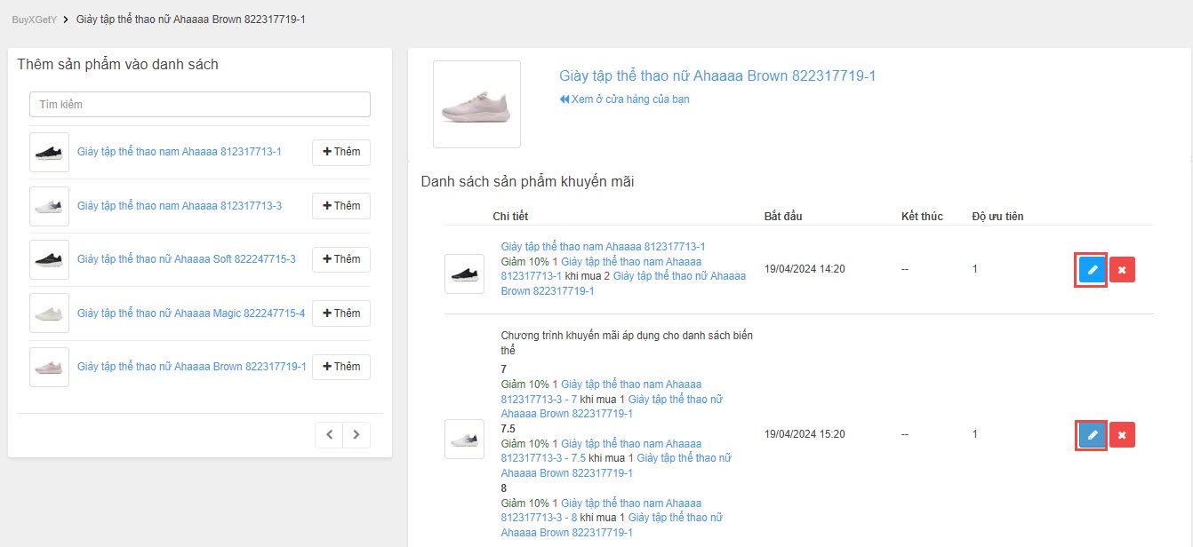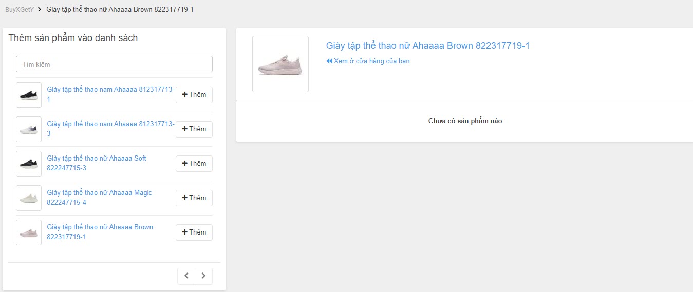 Hệ thống điều hướng đến trang thiết lập khuyến Mua X tặng Y của sản phẩm được chọn.