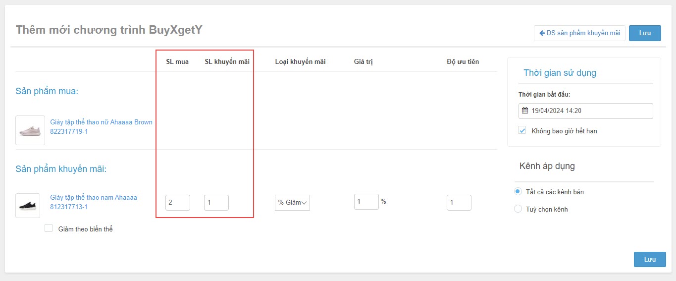 - Số lượng khuyến mãi: số lượng sản phẩm Y được khuyến mãi.