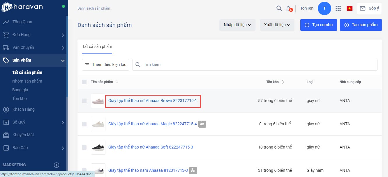 Bước 1: Trong mục Sản phẩm bạn chọn Tất cả sản phẩm.. Nhà bán hàng nhấp chọn sản phẩm cần cấu hình (sản phẩm X - sản phẩm mua)