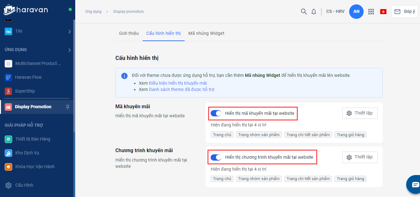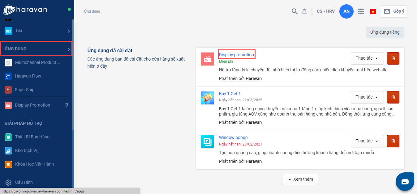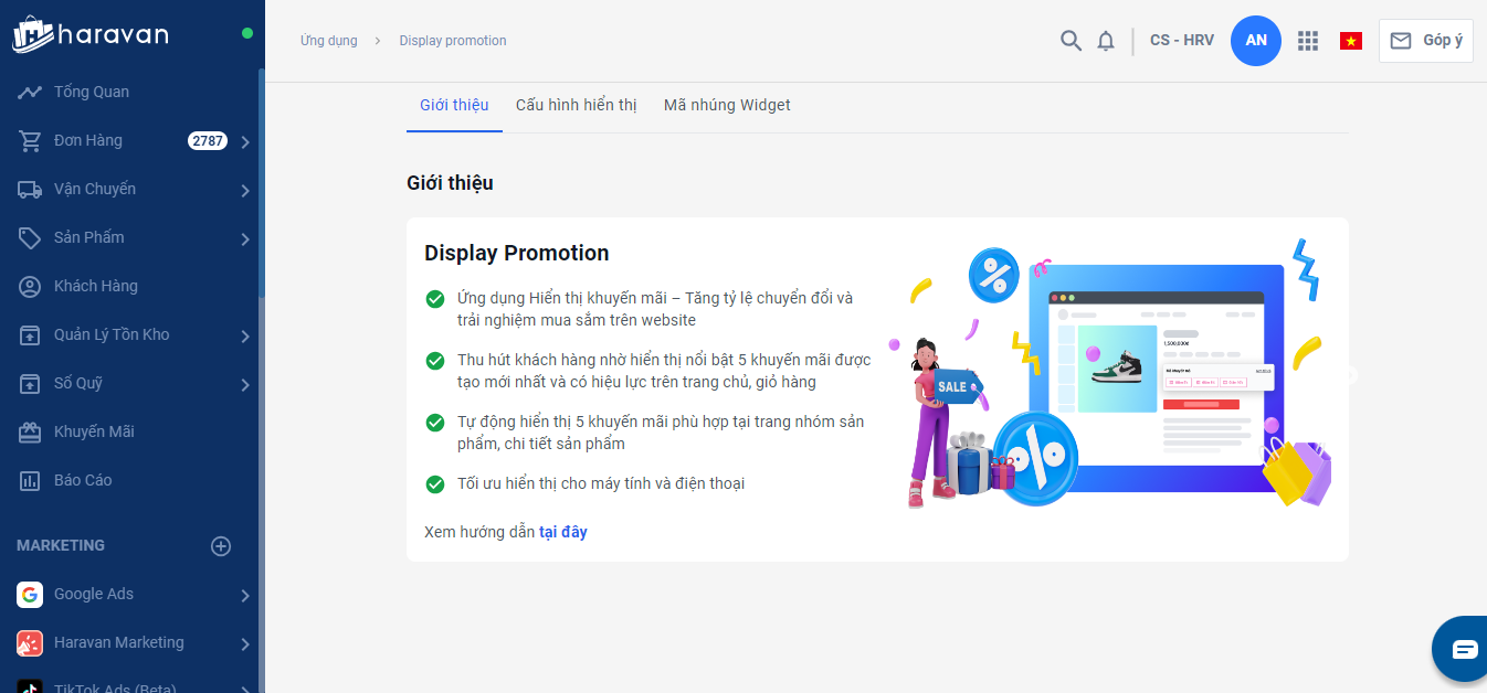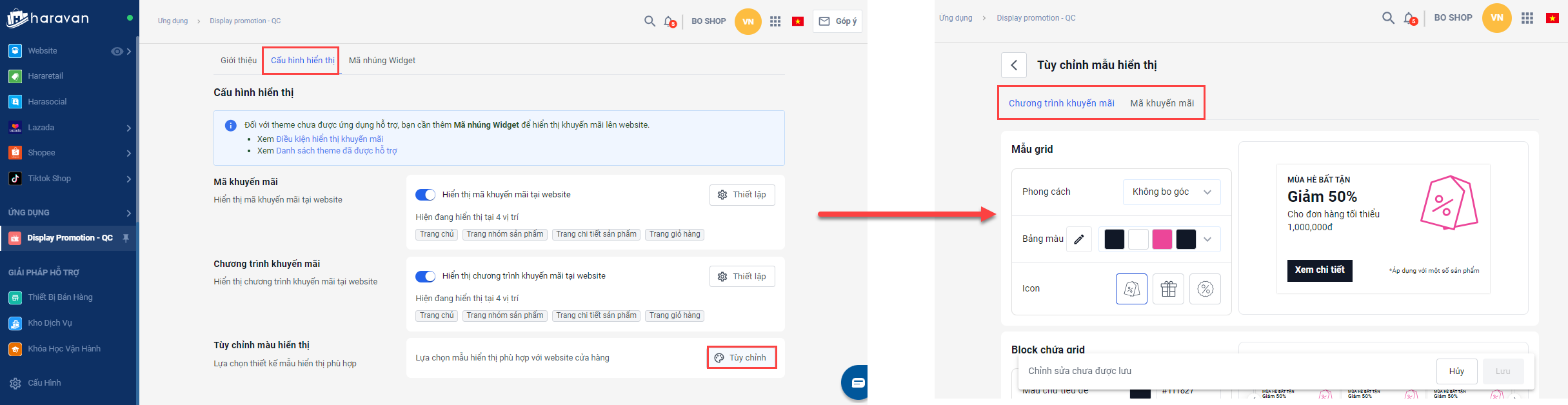 Nhà bán hàng truy cập vào link https://displaypromotion.haravan.app