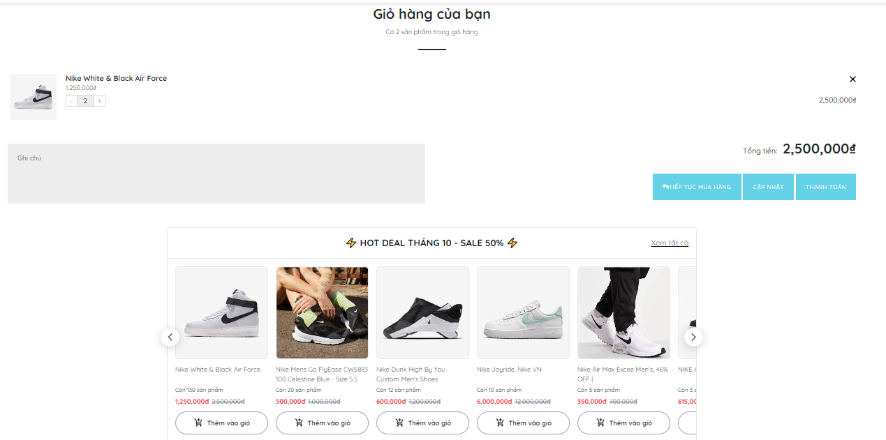 Kết quả: Sau khi hoàn tất cấu hình, các sản phẩm khuyến mãi của mục Upsell sẽ được hiển thị trên website tại trang giỏ hàng.