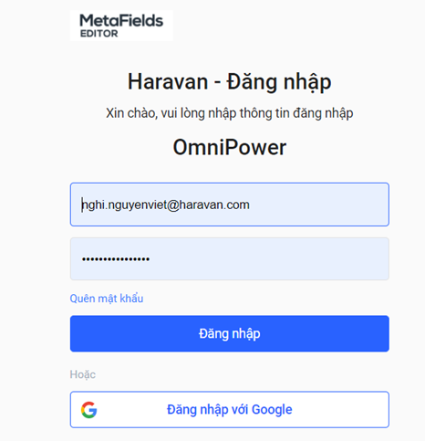 Khi ứng dụng được cài đặt thành công, hệ thống tự động điều hướng về trang ứng dụng MetaFields Editor.