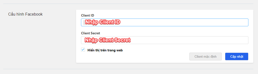 Lưu ý: Vì lý do bảo mật, Client Secret sẽ không hiển thị lên giao diện ứng dụng.