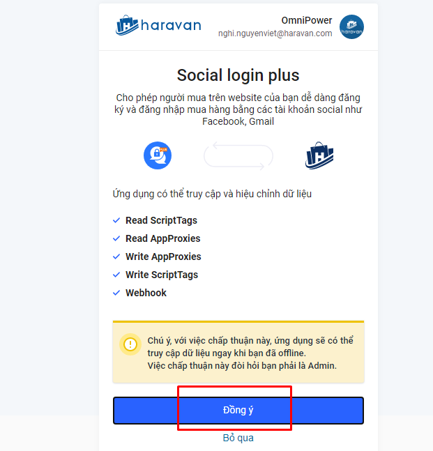 Social Login là ứng dụng được cung cấp hoàn toàn miễn phí, do nhóm Haravan Partners phát triển.