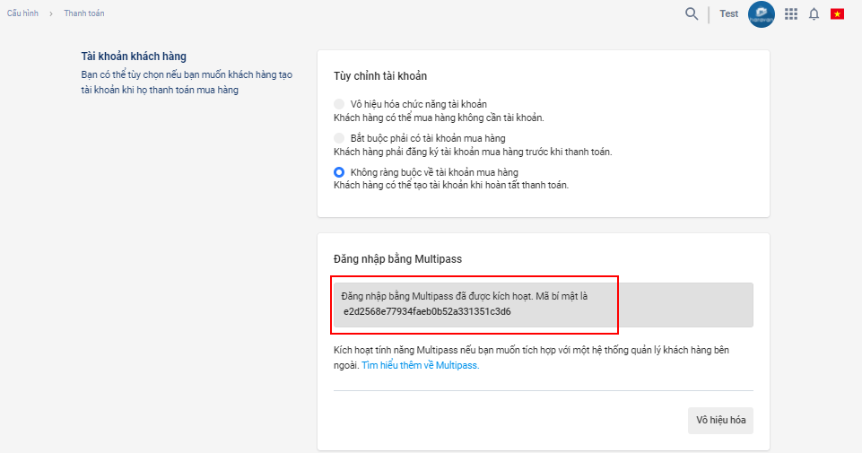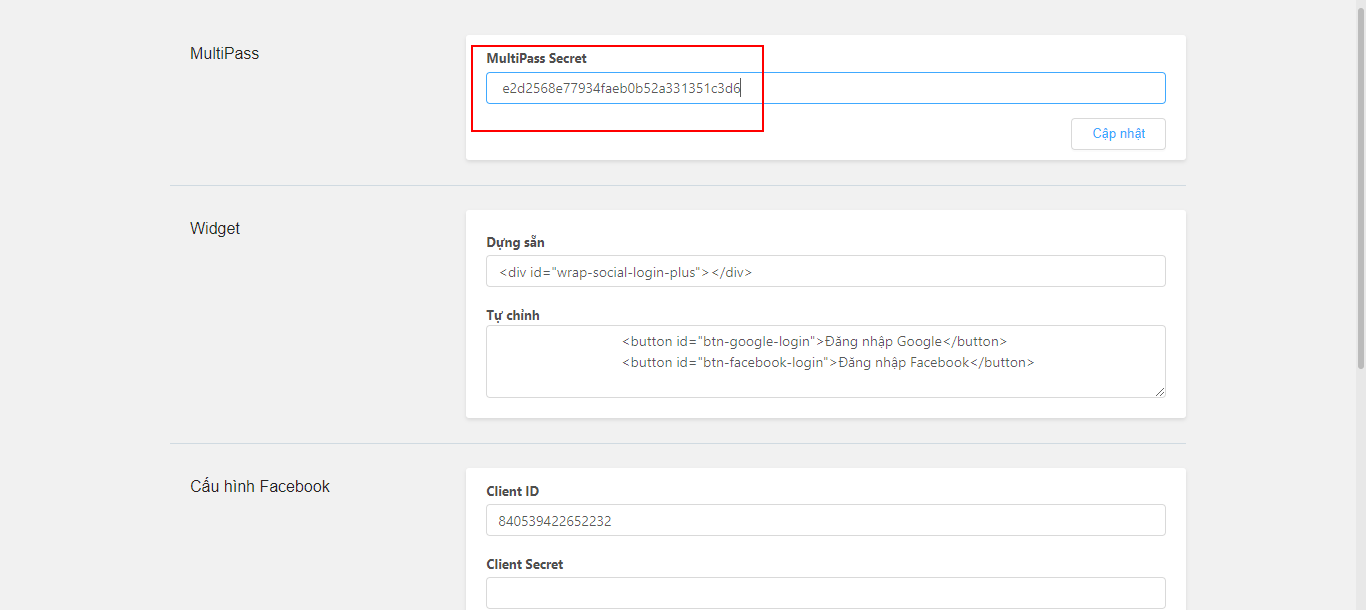 Sau đó bạn thực hiện gắn mã Multipass này vào mục Multipass Secret