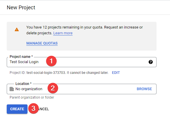 Bước 1: Tạo project tại Google Developers Console nếu bạn chưa khởi tạo project nào trước đây.