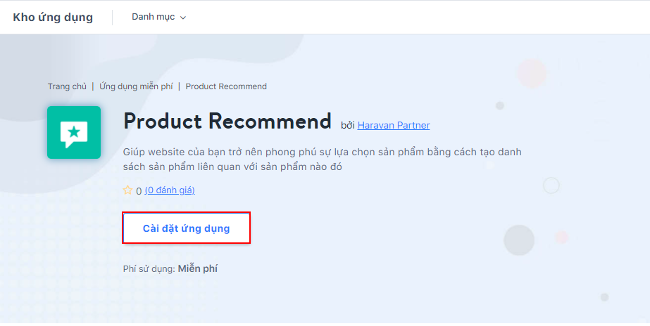 Nhà bán hàng truy cập vào Trang quản trị Haravan -> Ứng dụng -> Product Recommend.
