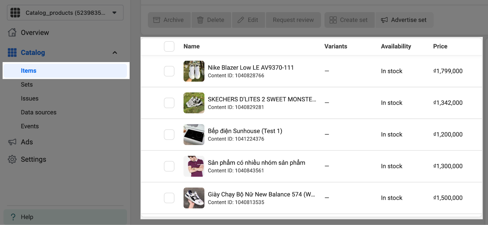 Tạo danh mục trên Meta Ecommerce Manager