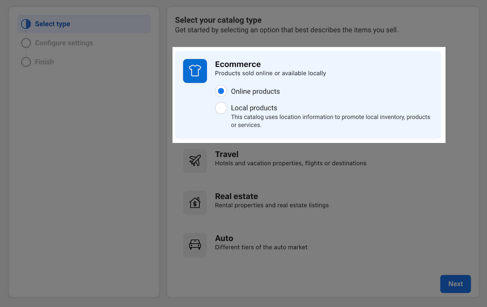Bước 2: Chọn danh mục Ecommerce và chọn Online products.
