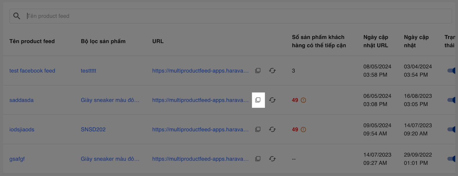 Bước 2: Tại ứng dụng Multichannel Product Feed, bạn sao chép link URL của nguồn cấp dữ liệu bạn muốn đăng Facebook.