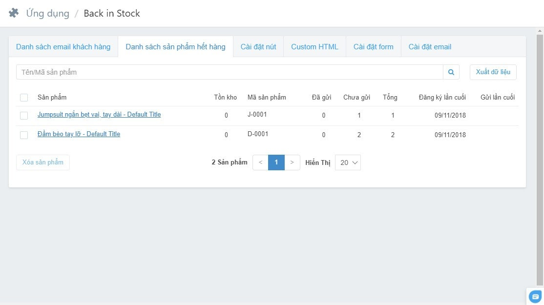 Sản phẩm mà Khách mua hàng đăng ký sẽ được chuyển về tab Danh sách sản phẩm hết hàng trong của ứng dụng Back in Stock.