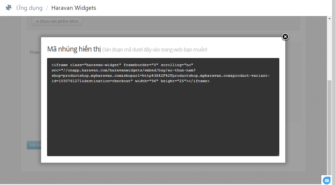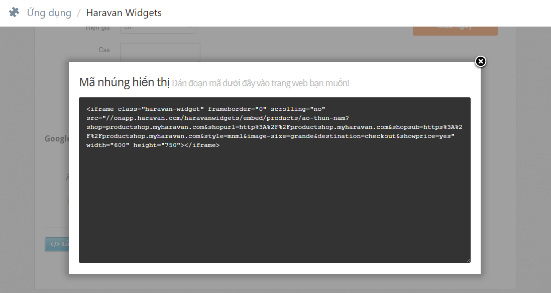 Nhúng sản phẩm là các chức năng thông dụng nhất của Haravan Widgets, cho phép người bán nhúng một hình ảnh của một sản phẩm cũng như cấu hình giao diện.