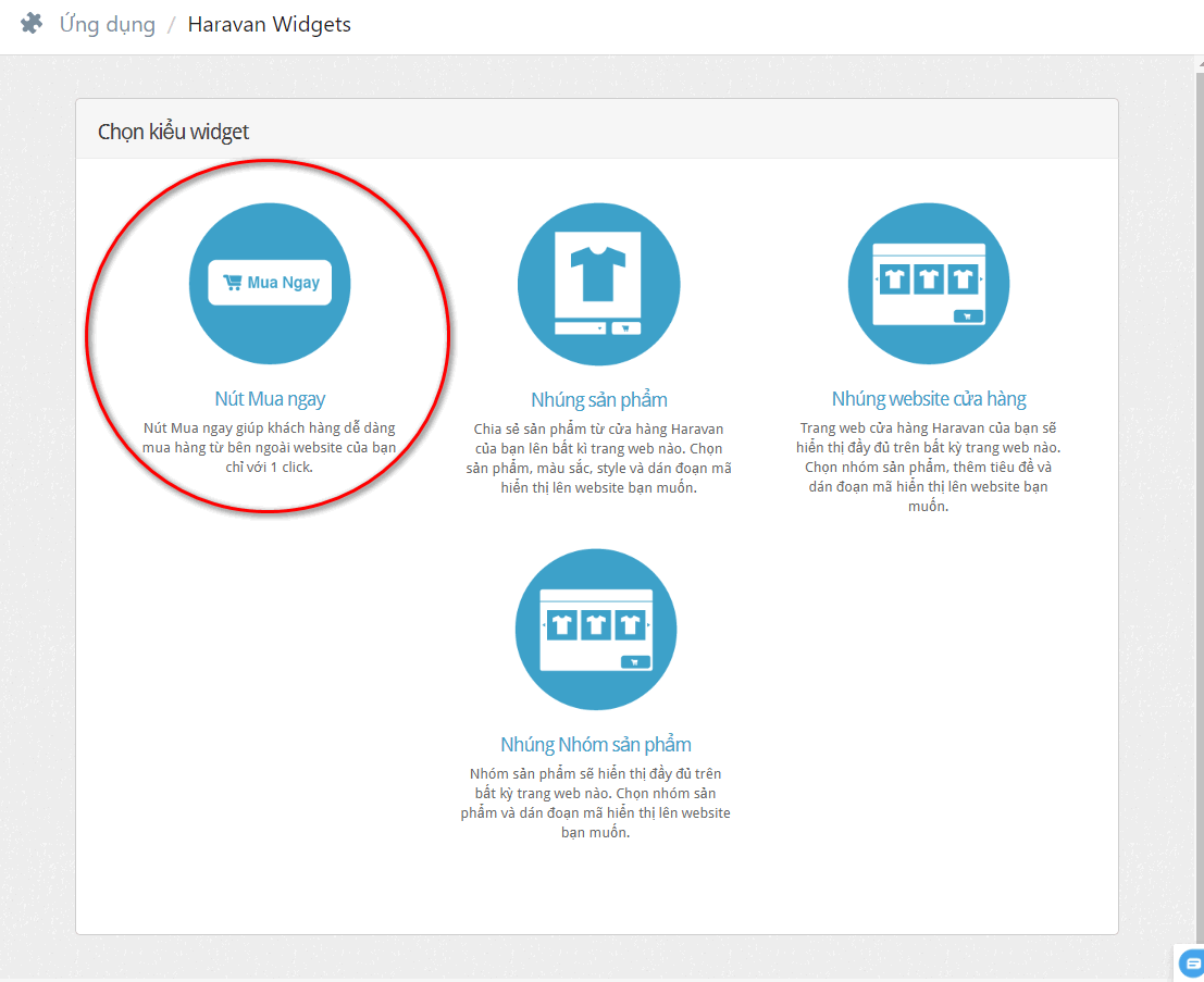Trên trang ứng dụng Widgets, chọn Nút mua ngay.