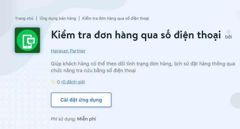 Kiểm tra đơn hàng qua số điện thoại là ứng dụng miễn phí, được phát triển bởi nhóm Haravan Partners.