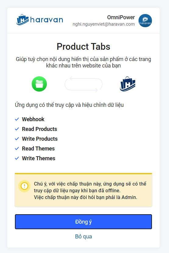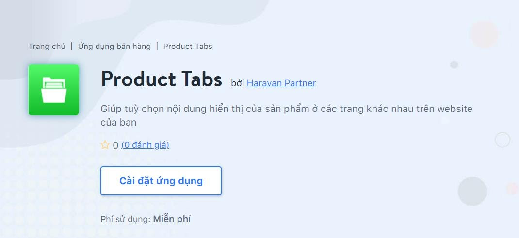 Product Tabs là ứng dụng do Haravan Partners phát triển, cung cấp hoàn toàn miễn phí.