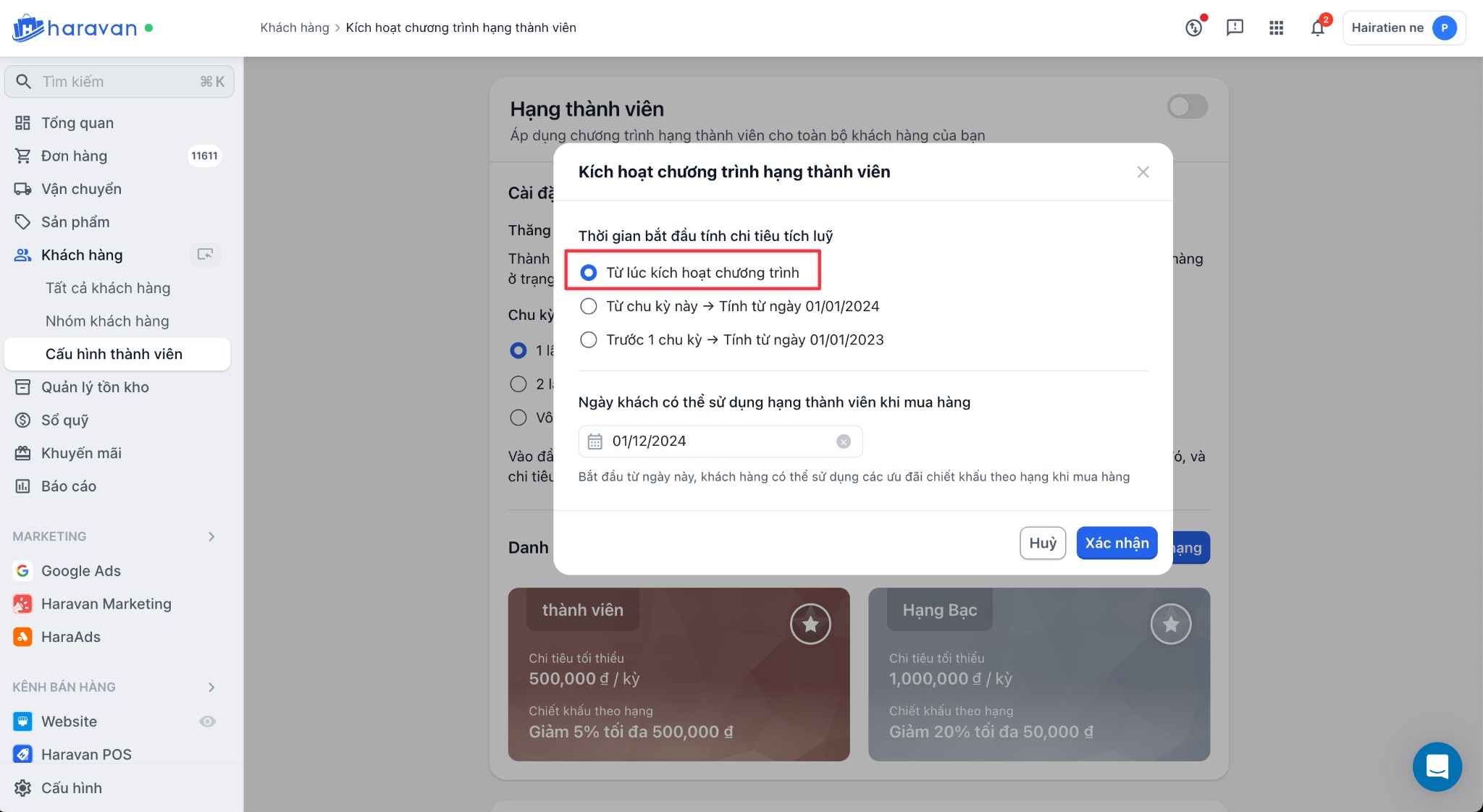 2.3 Chọn Xác nhận để kích hoạt Cấu hình hạng thành viên