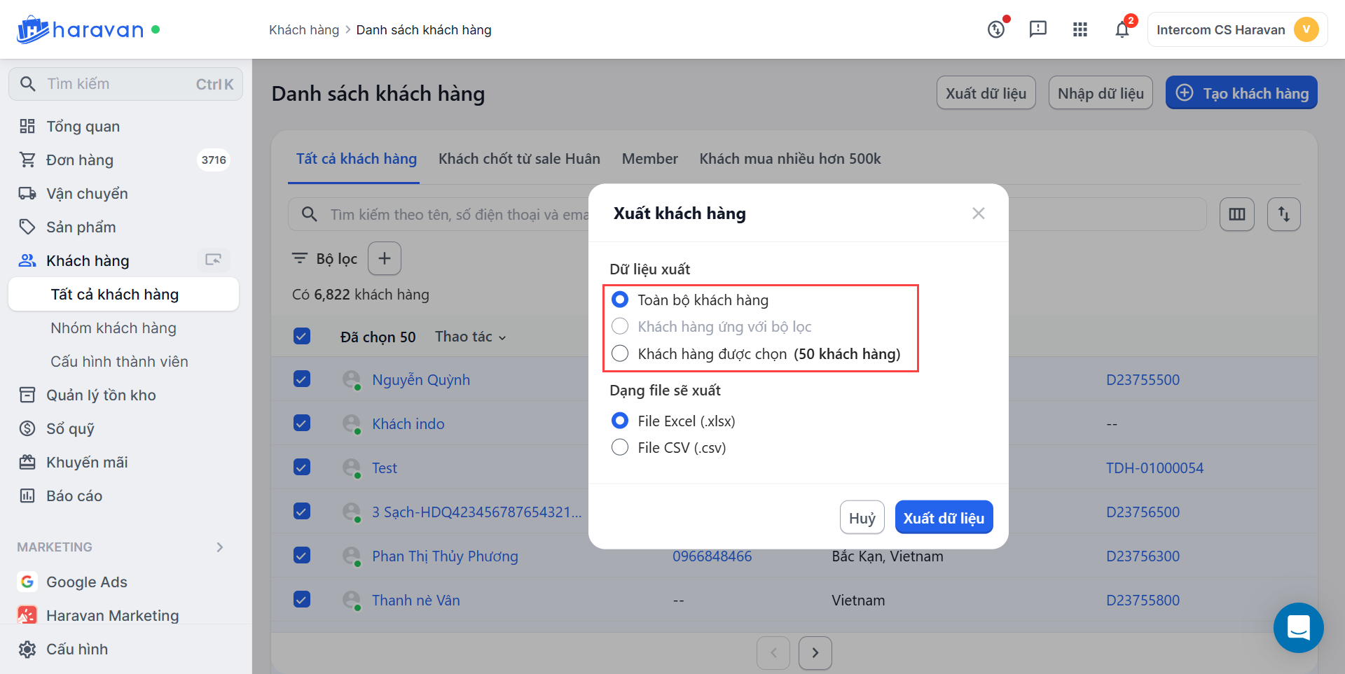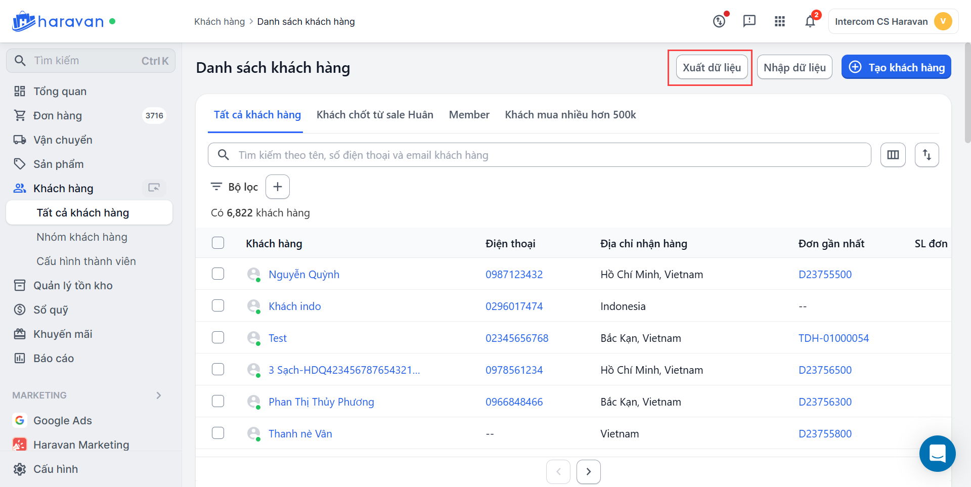 Khi người bán muốn xuất dữ liệu khách hàng để phục vụ cho những chương trình khuyến mãi hay tri ân khách hàng hoặc những mục đích khác thì người bán có thể thao tác như sau: