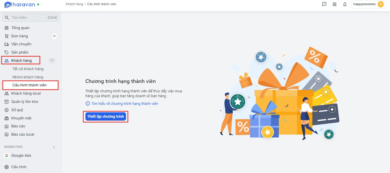 * Chỉ có tài khoản chủ sở hữu và tài khoản toàn quyền quản trị mới thiết lập được chương trình hạng thành viên.