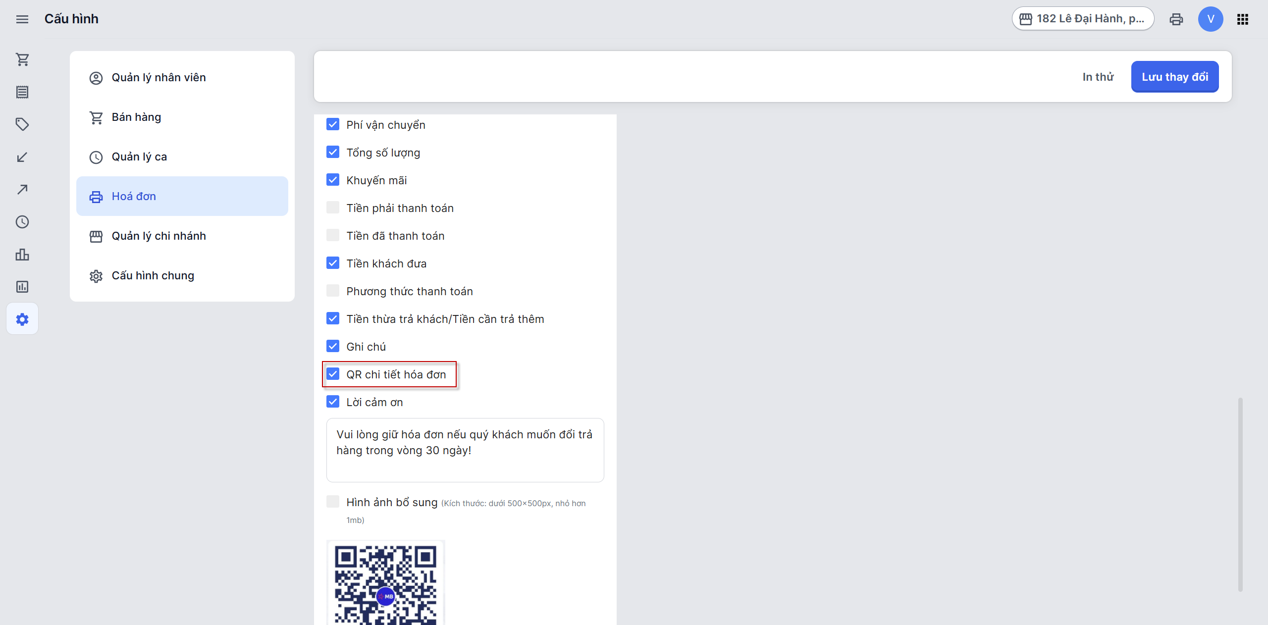 Thiết lập mã QR đơn hàng trên hóa đơn để xem tình trạng hóa đơn điện tử