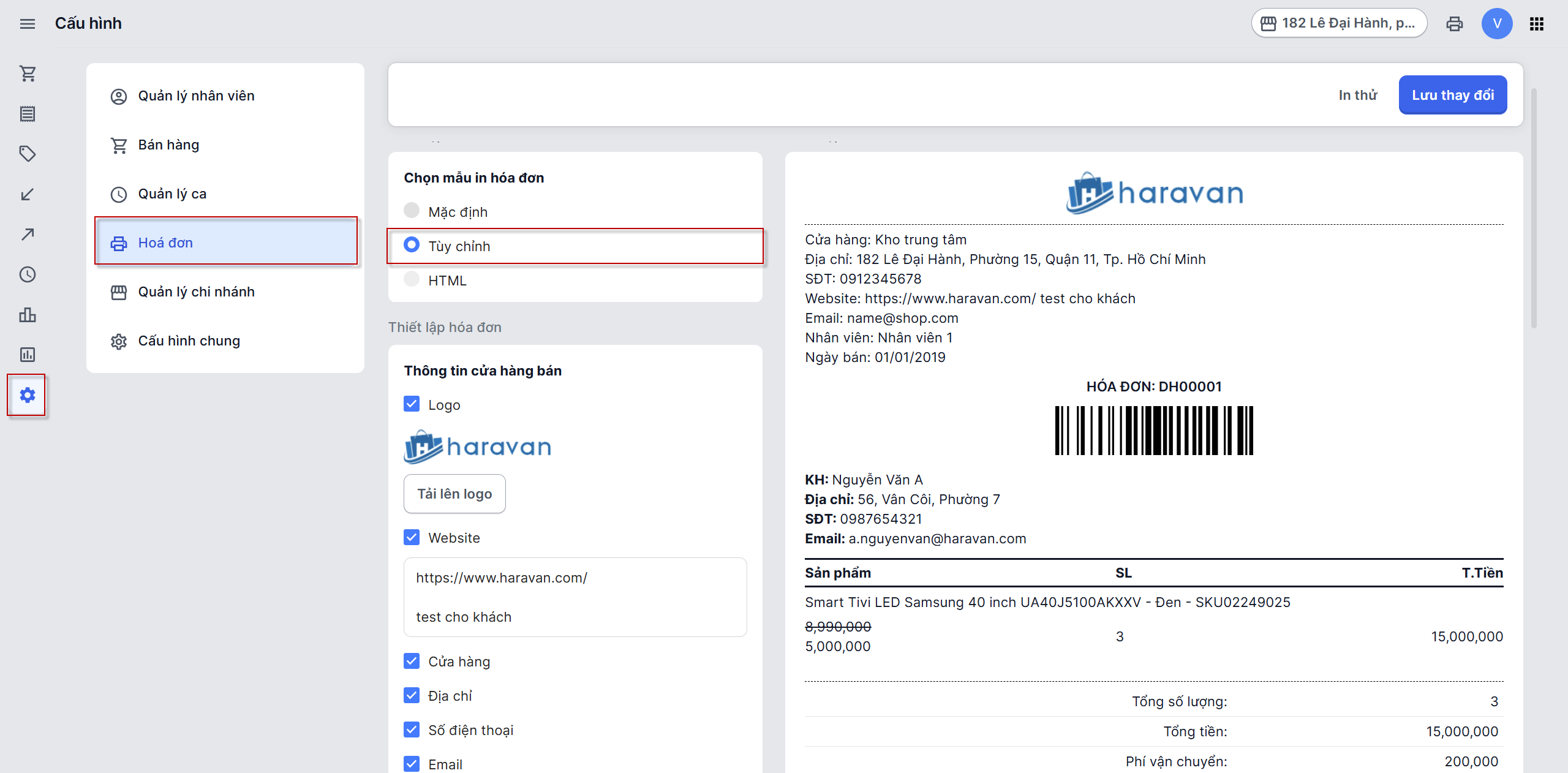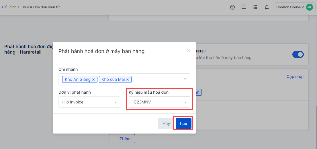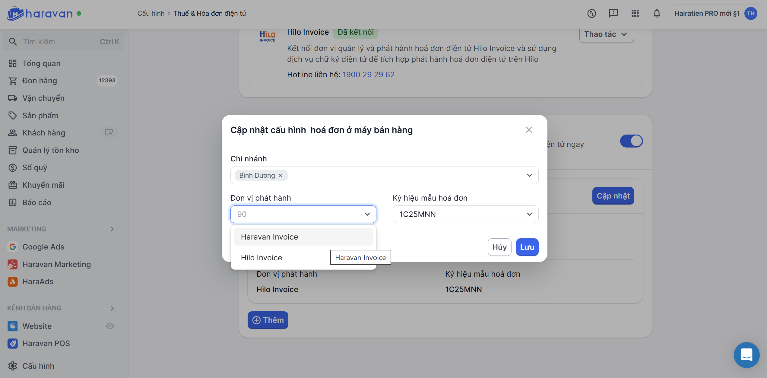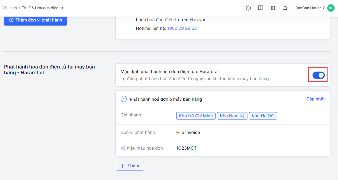 Thiết lập Tự động phát hành hóa đơn điện tử ở Haravan POS