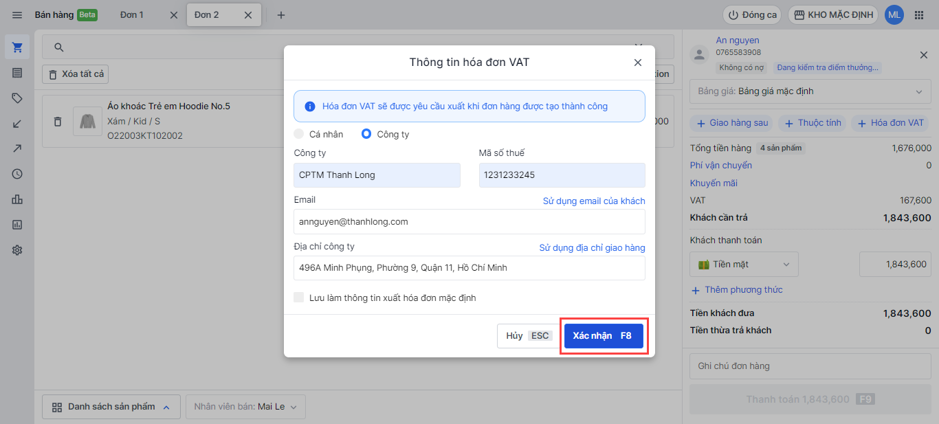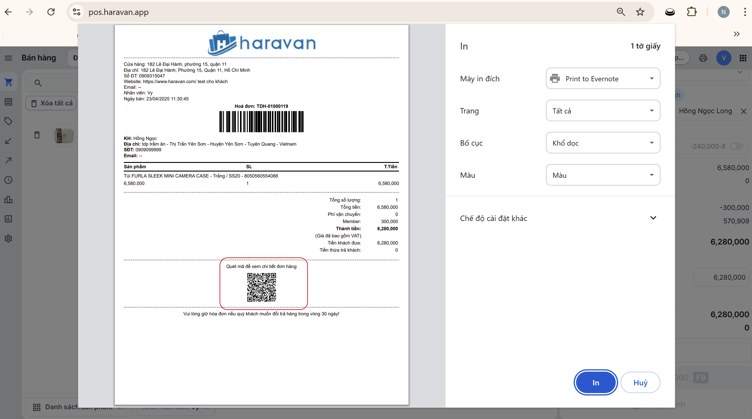 Tạo đơn hàng và Yêu cầu xuất hóa đơn điện tử trên Haravan POS