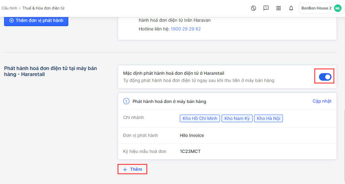 - Thiết lập Tự động phát hành hóa đơn điện tử ở Haravan POS