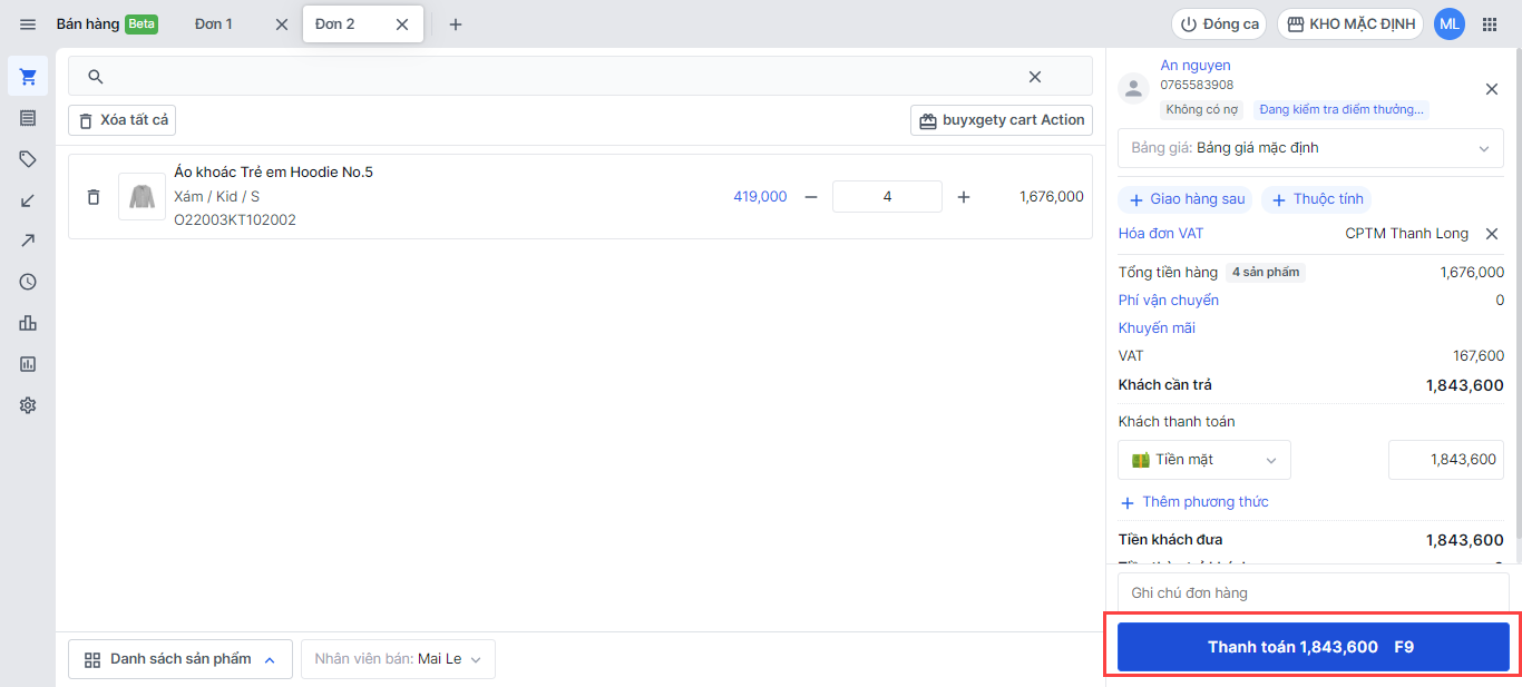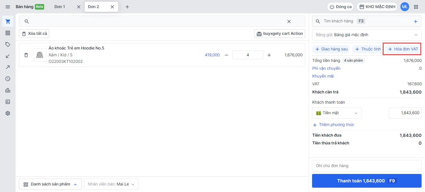 - Để thêm thông tin xuất hóa đơn cho người mua, nhà bán hàng chọn + Hóa đơn VAT