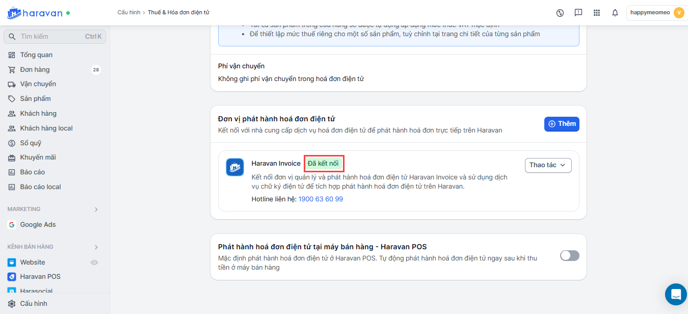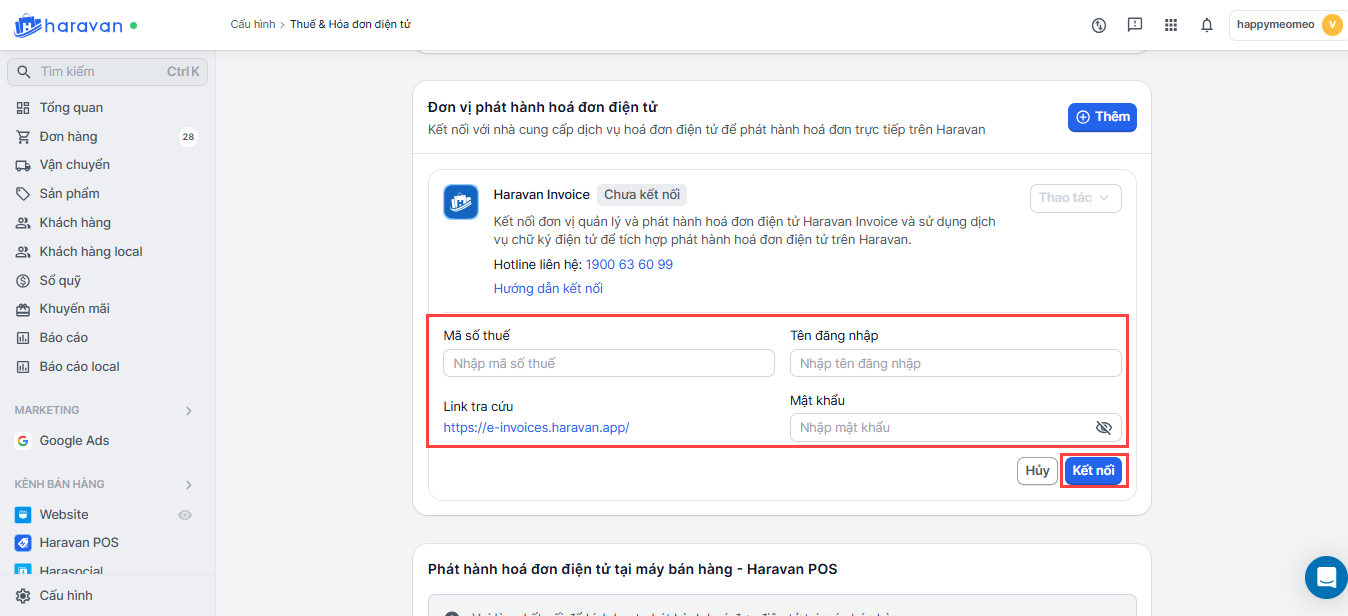 Hướng dẫn kết nối phần mềm phát hành hóa đơn điện tử Haravan Invoice