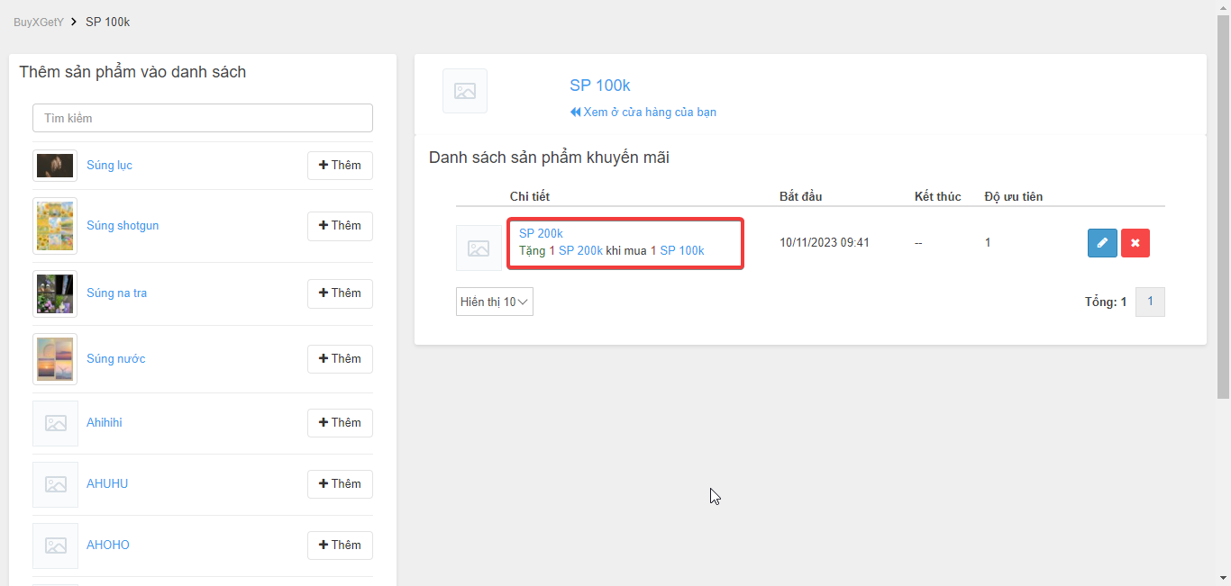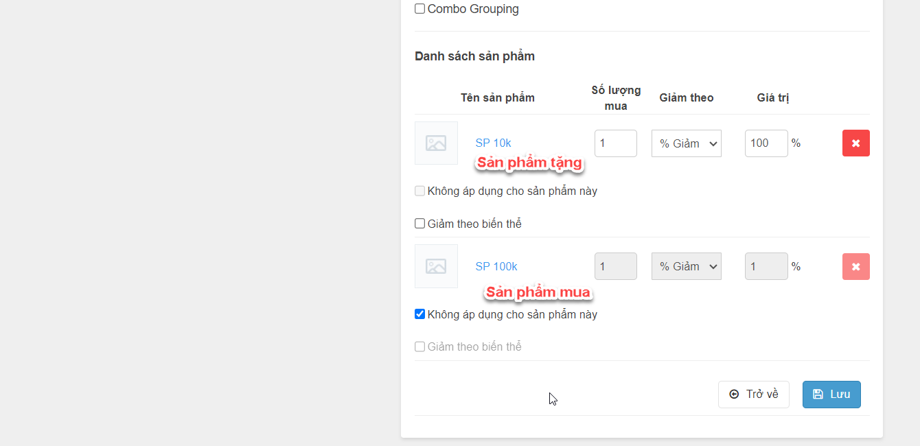 Setup Combo: Mua sản phẩm SP 100k sẽ được giảm 100 % cho sản phẩm SP 10k