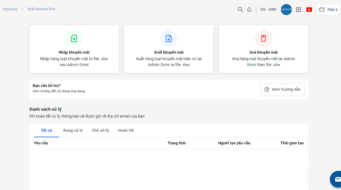 Cài đặt ứng dụng cho tài khoản Haravan