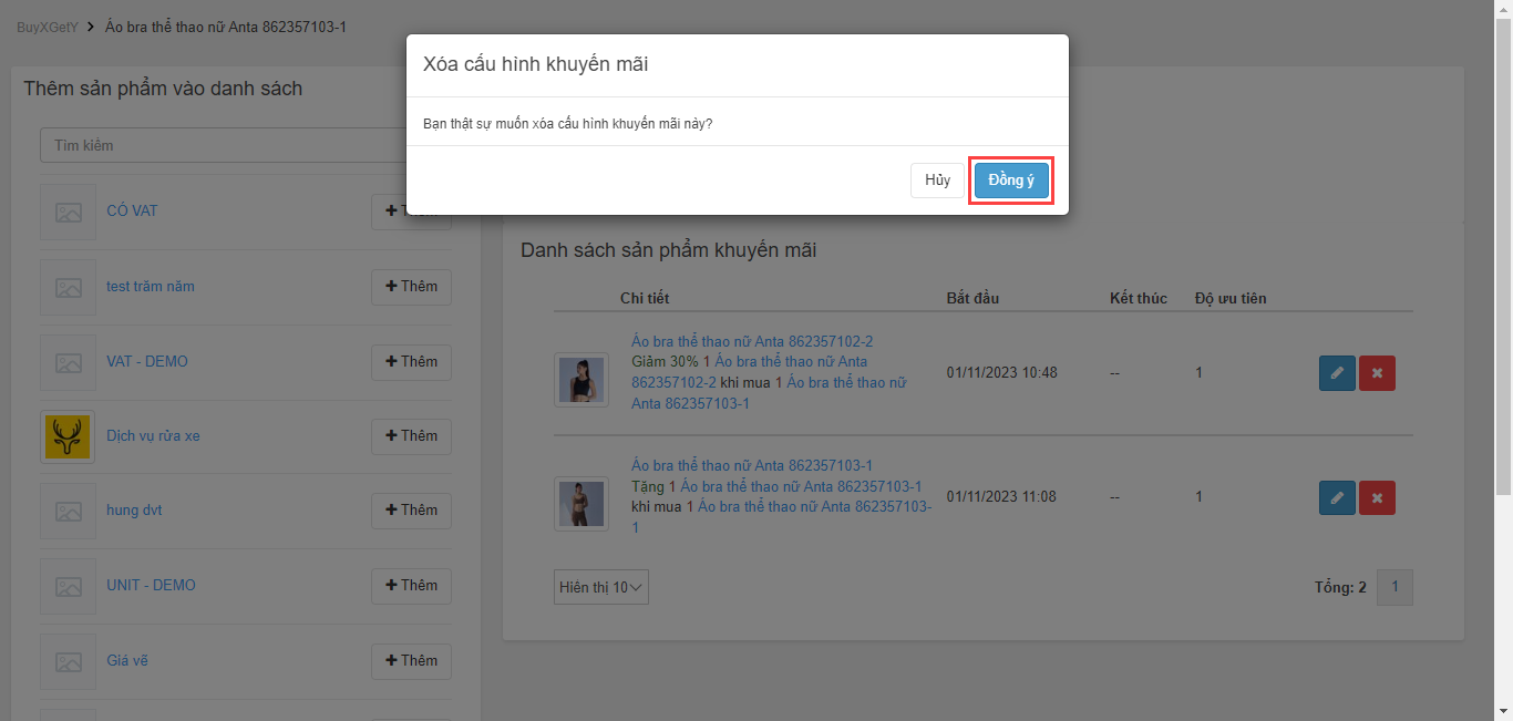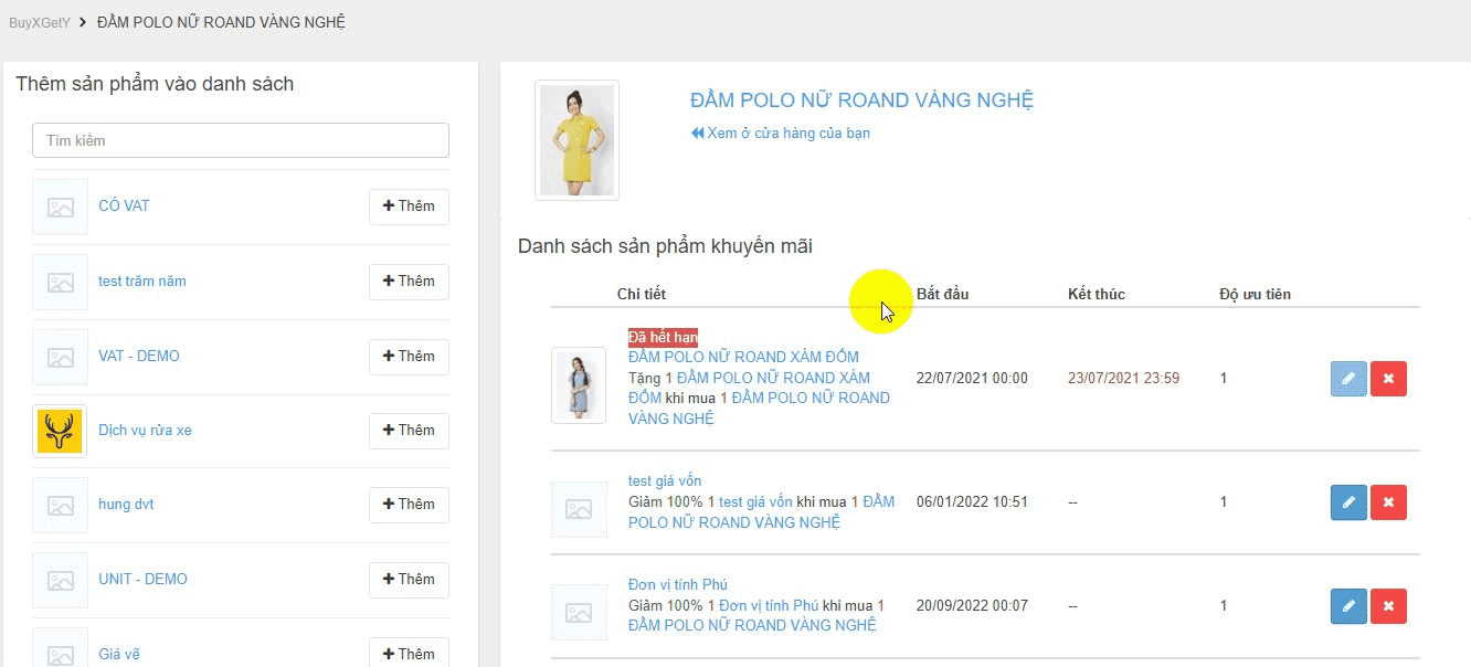 - Nhà bán chọn vào khuyến mãi muốn xóa
