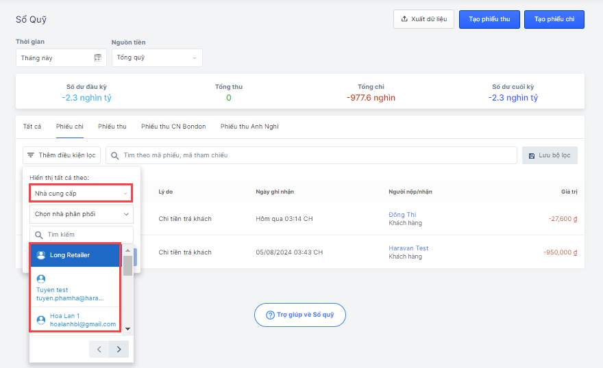 - Vào mục Sổ quỹ, bạn chọn phiếu chi hoặc phiếu thu