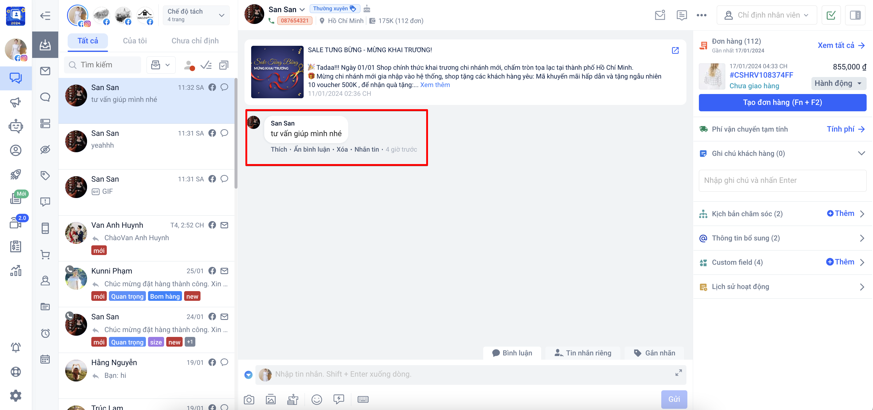Vì vậy, Harasocial sẽ đồng bộ text để đảm bảo nhân viên tư vấn nắm được nhu cầu tư vấn cho khách hàng