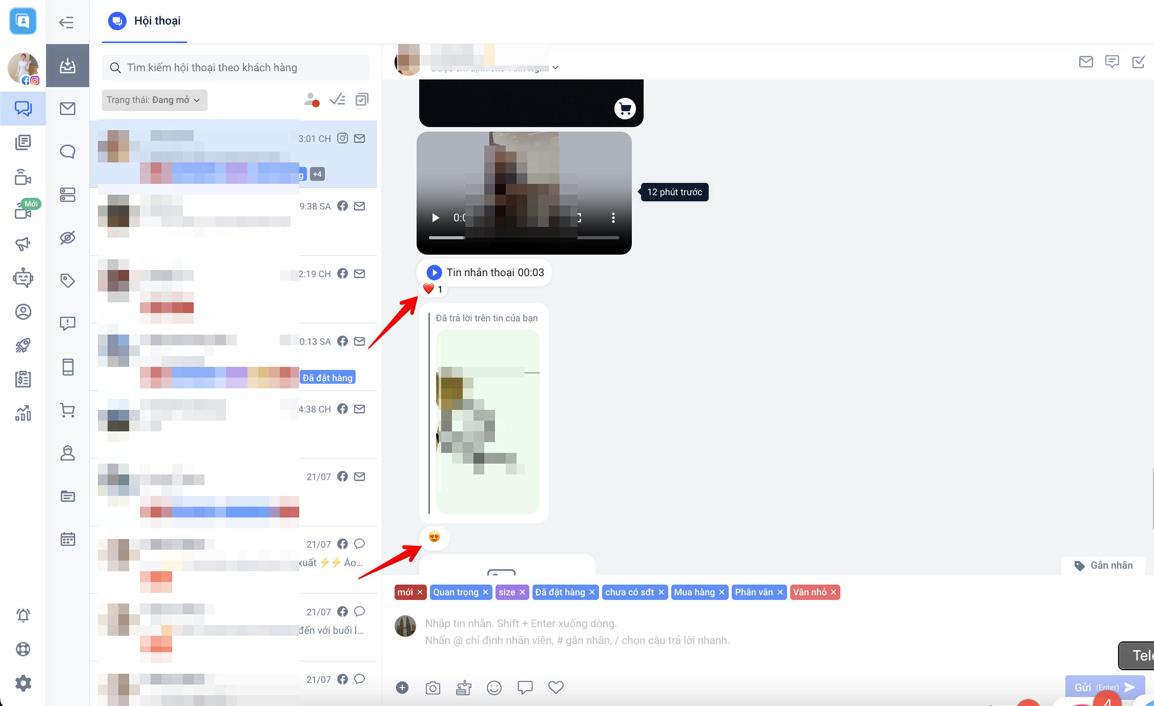 Hiện tại, Harasocial chỉ hỗ trợ hiển thị các reaction (biểu tượng bày tỏ cảm xúc) từ phía khách hàng trên tin nhắn của khách hàng và của trang. Bạn không thể thực hiện bày tỏ cảm xúc trên tin nhắn tại Harasocial.