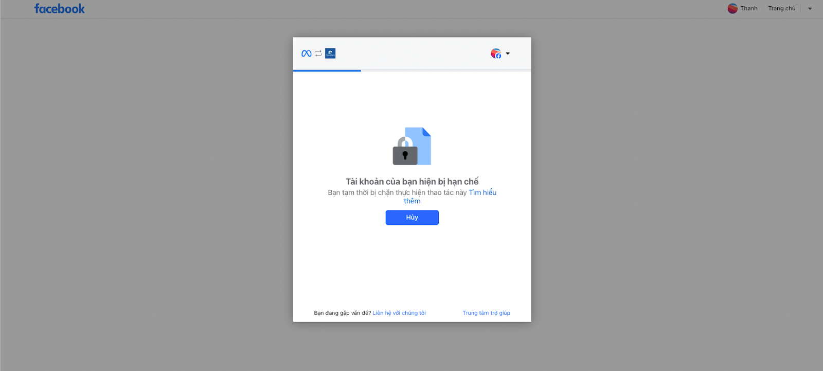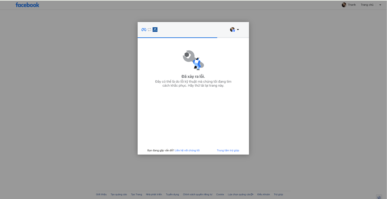 - Nguyên nhân: Tài khoản Facebook chưa được thêm vào Business hoặc đã bị khoá sẽ không đi tiếp bước kết nối.
