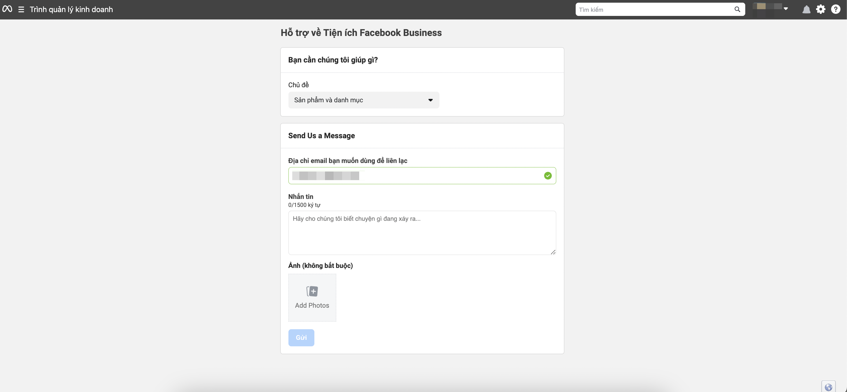 Nhập yêu cầu để gửi đến Meta để được hỗ trợ: