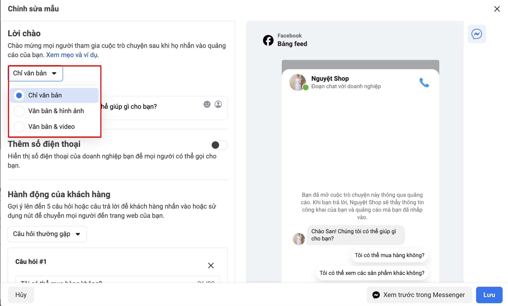 **Trường hợp:**Khi bạn đã thực hiện đồng bộ sản phẩm lên công cụ khám phá sản phẩm trên Messenger, sau đó khi thiết lập quảng cáo bạn lại không tìm thấy nút "Thêm sản phẩm" của công cụ khám phá sản phẩm trên Messenger.