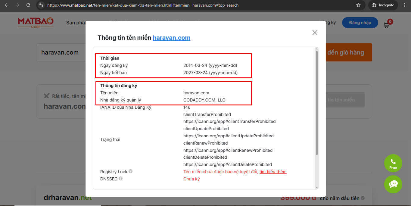 - Name Servers: Dịch vụ DNS đang sử dụng.
