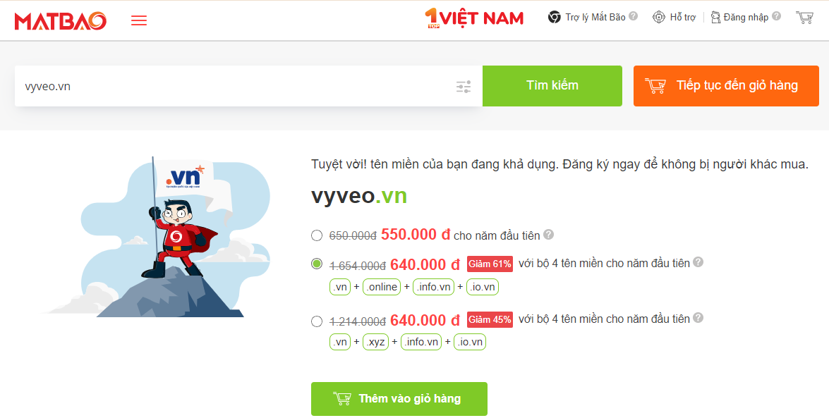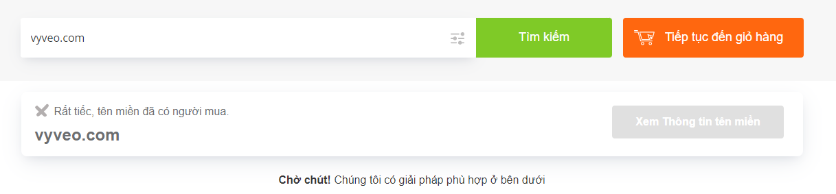Như ví dụ dưới đây, cùng một tên miền nhưng khác đuôi thì sẽ là 2 tên miền khác nhau. Một tên miền đã được mua, bạn không thể đăng ký mua tên miền này nữa.