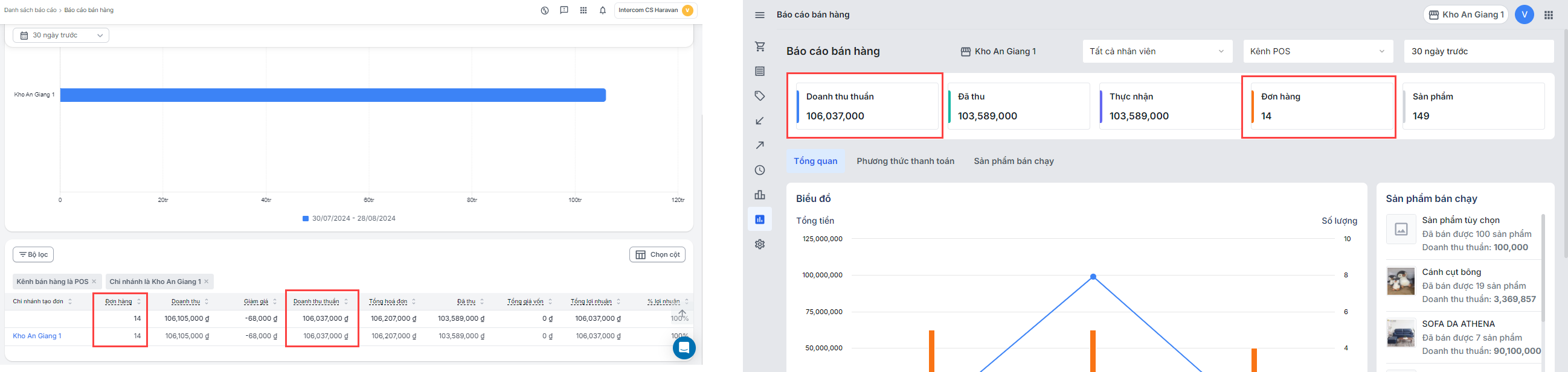 Khi đã hoàn tất tùy chỉnh báo cáo, số liệu báo cáo giữa hai nền tảng sẽ trùng khớp với nhau