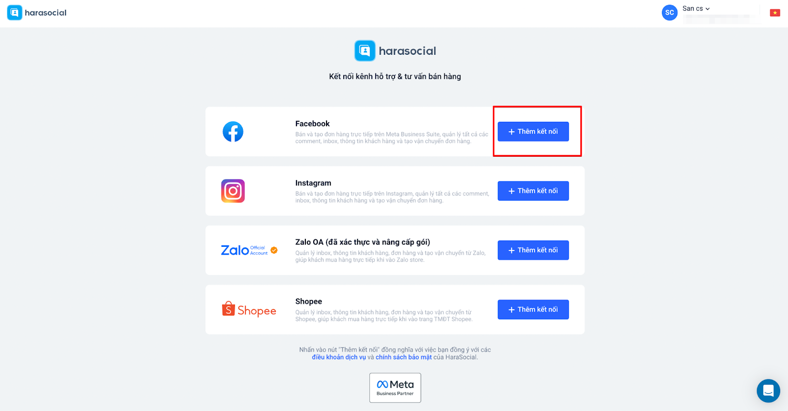 - Bước 2: Chọn Thêm kết nối ở kênh Facebook