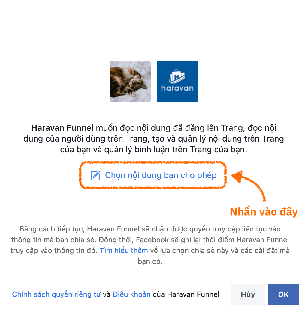 - Bước 3: Tại cửa sổ yêu cầu cấp quyền, nhấn “Chọn nội dung bạn cho phép"