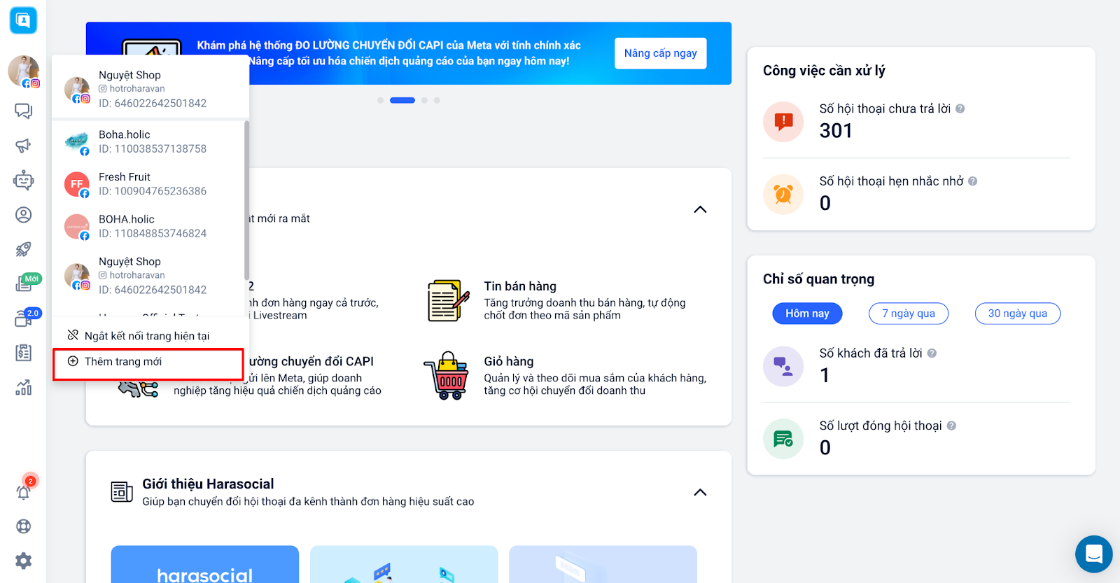 - Bước 1: Truy cập vào HaraSocial và Thêm trang mới