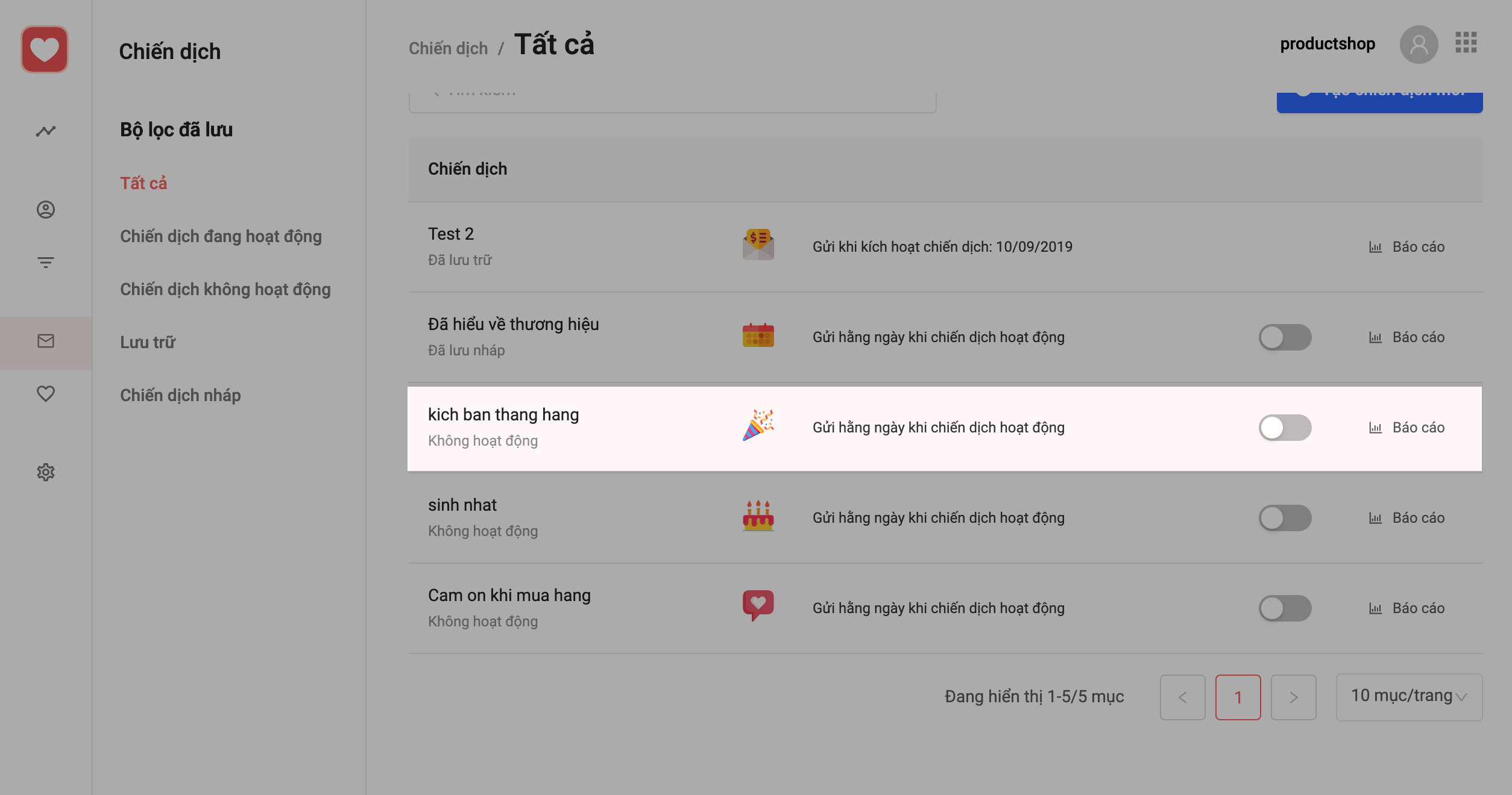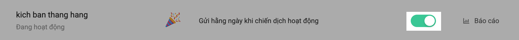 Sau khi hoàn tất kiểm tra email và sms nháp, bạn hãy tắt chiến dịch để có thể điều chỉnh lại nhóm đối tượng đúng với mục tiêu của bạn.