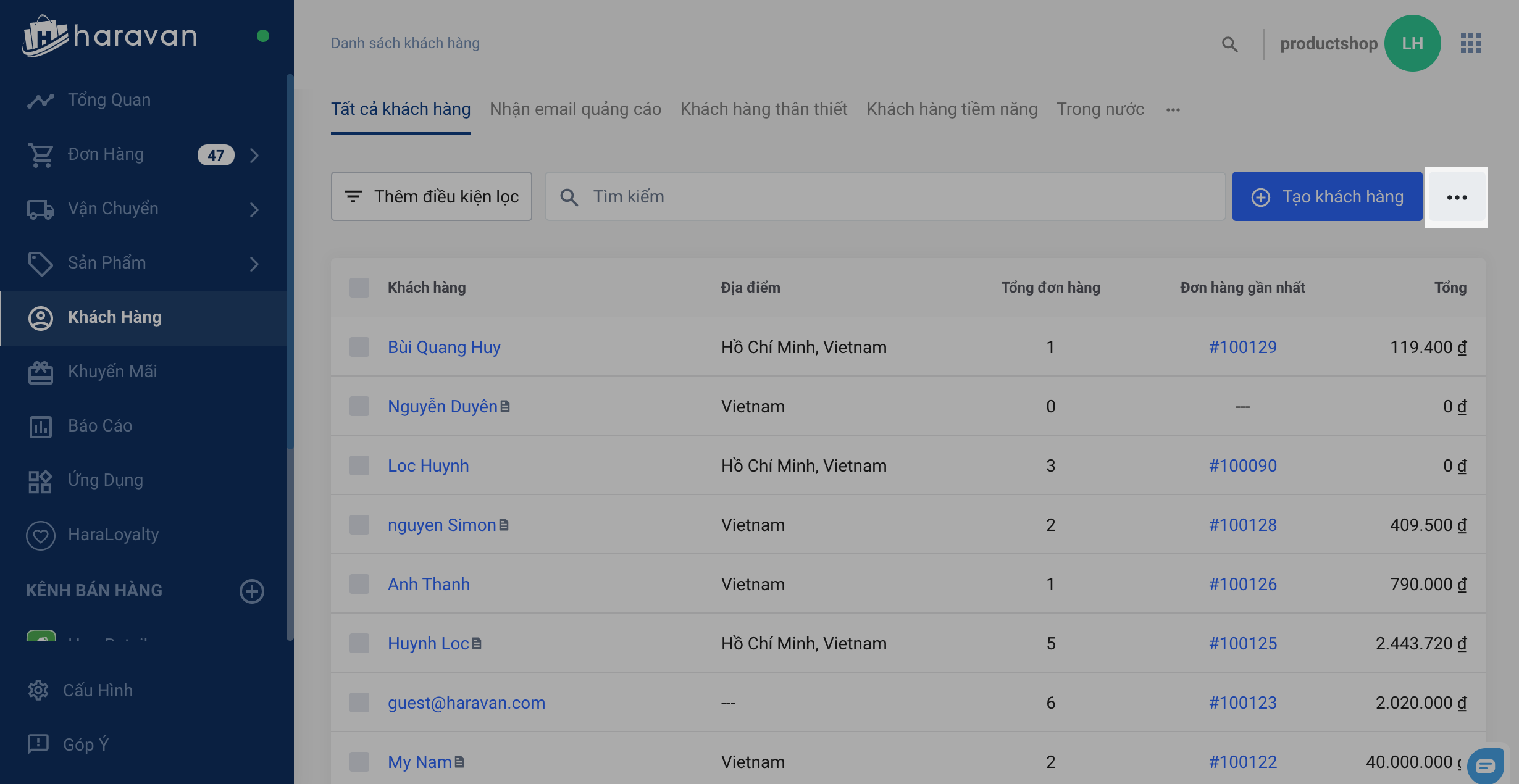 Đăng nhập vào trang quản trị MyHaravan, chọn Khách hàng.