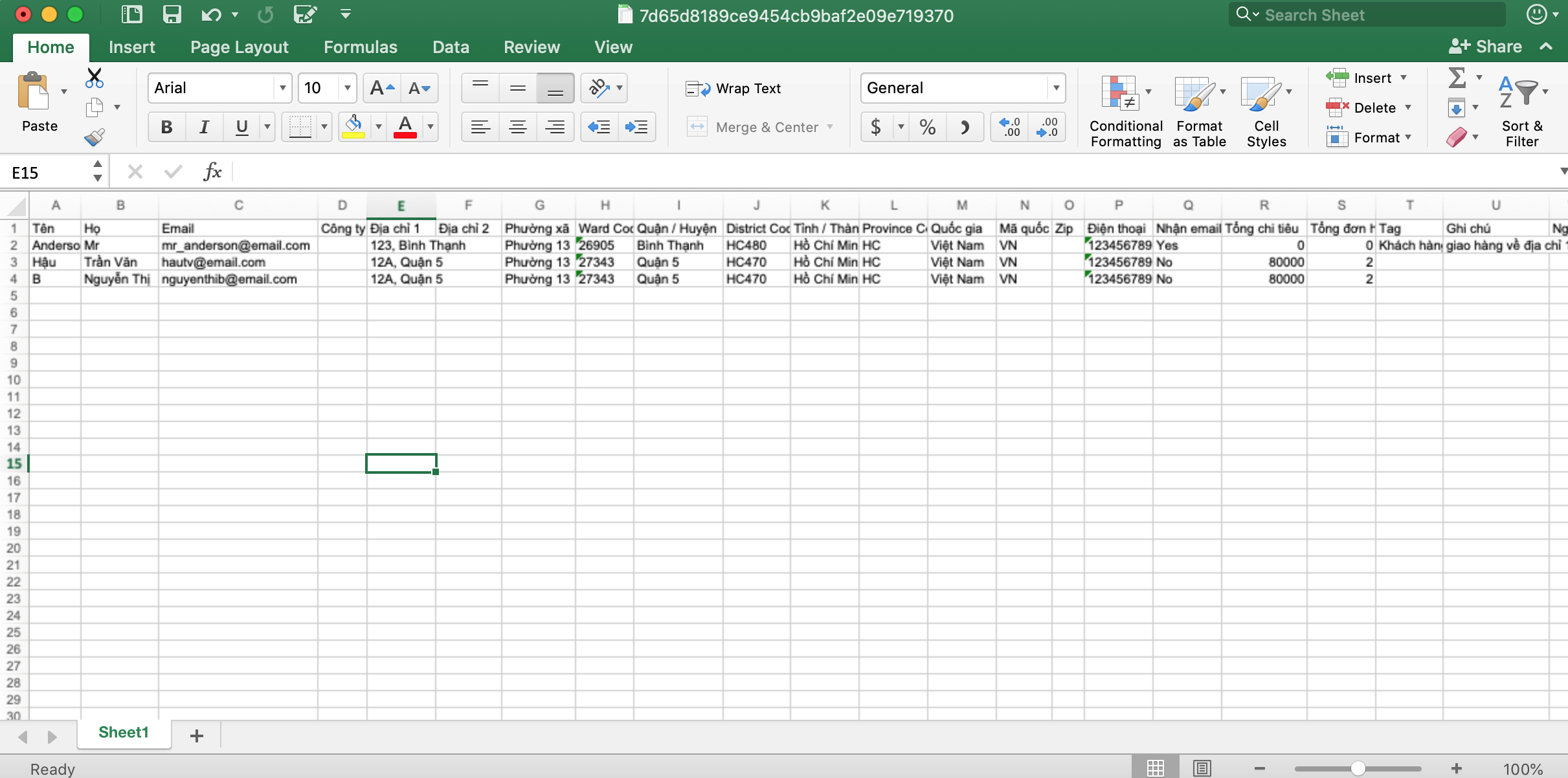Và bắt đầu nhập các thông tin khách hàng hiện có của bạn vào file.