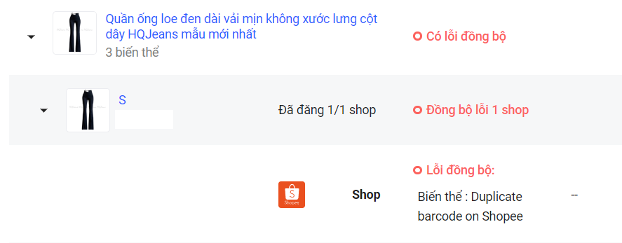 Nguyên nhân: Sản phẩm đang bị trùng SKU trên Shopee (Duplicate barcode on Shopee)