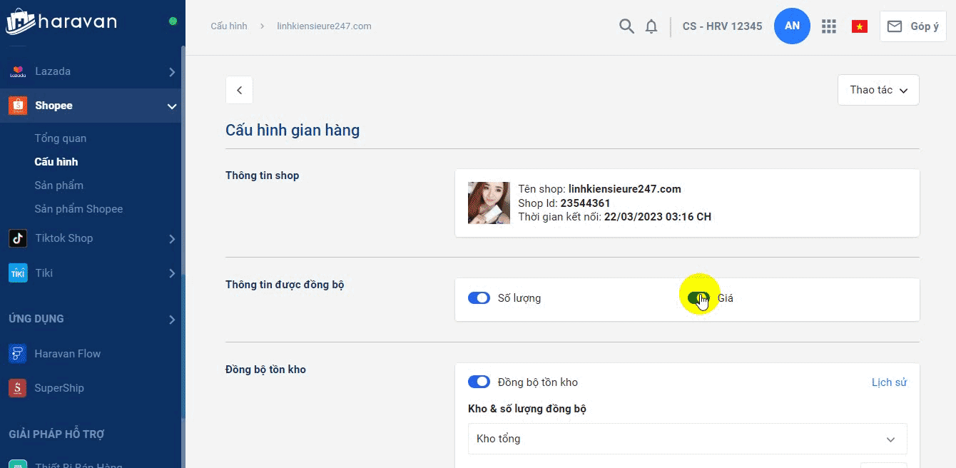 Hướng dẫn liên kết sản phẩm giữa Haravan và Shopee
