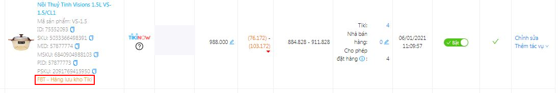 Nguyên nhân: FBT là hàng nhà bán hàng lưu kho Tiki riêng và Tiki quản lý tồn kho không phải nhà bán hàng quản lý tồn kho bằng seller center Tiki nên không đồng bộ được.